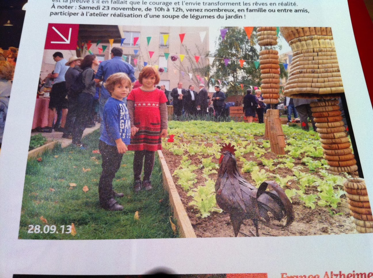 Les habitués du jardin reconnaîtront le coq, présent lors de l’inauguration du Jardin Rosa Parks le 28 Septembre. Suivez la flèche et vous voyez Valérie et Damien.