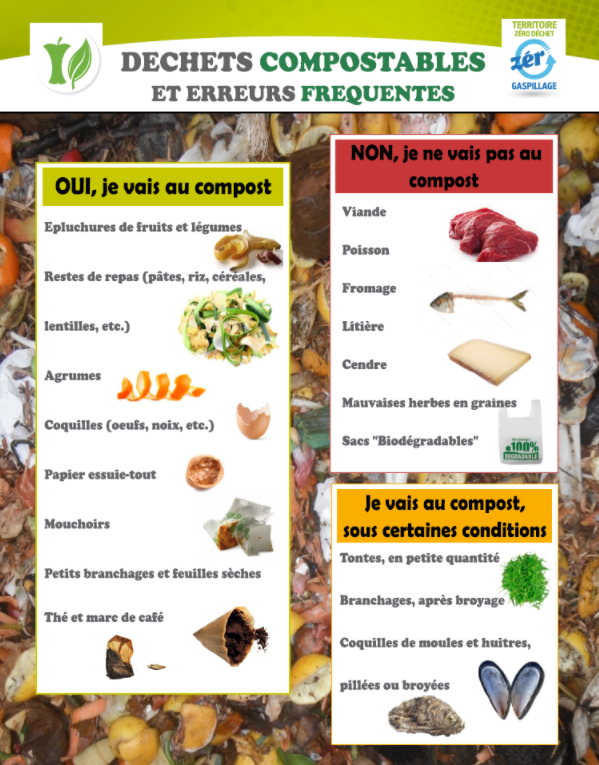 - découpez vos déchets organiques, respecter les consignes de tri (ex : pas de produits carnés, agrumes, ou pain)